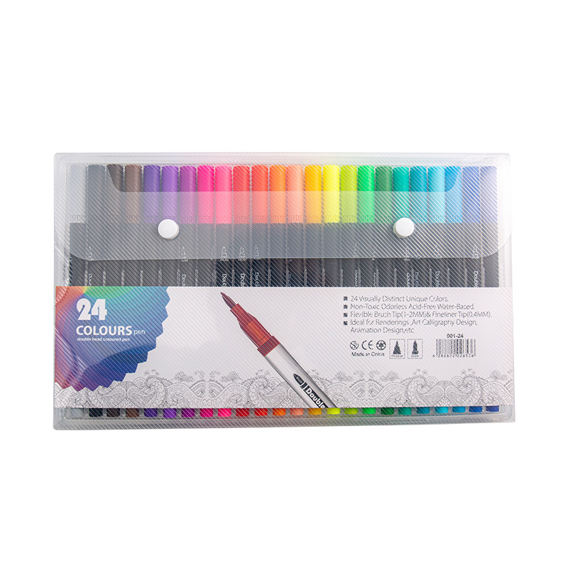 The Brush and Fineliner Dual tip mark is designed for artists, designers, and stationery users who need versatility in one pen. Each marker features a dual-tip design, combining a smooth brush tip for expressive strokes and a fine 0.5 mm fineliner tip for detailed outlines and writing.